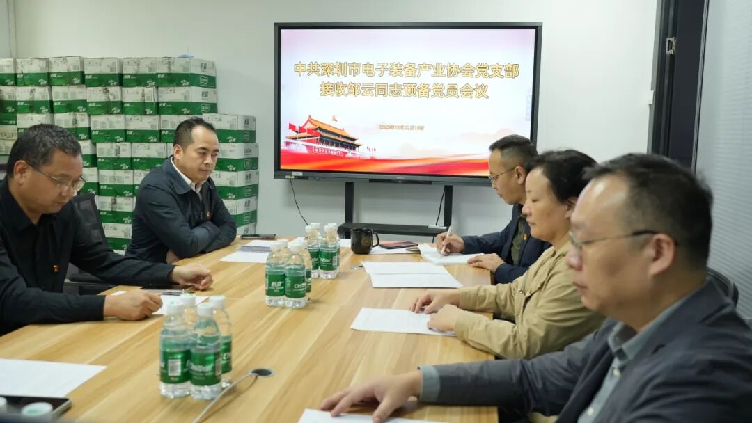 中共深圳市电子装备产业协会支部委员会召开会议,专题讨论接收邹云同志为预备党员,会议由支部书记刘勇主持。